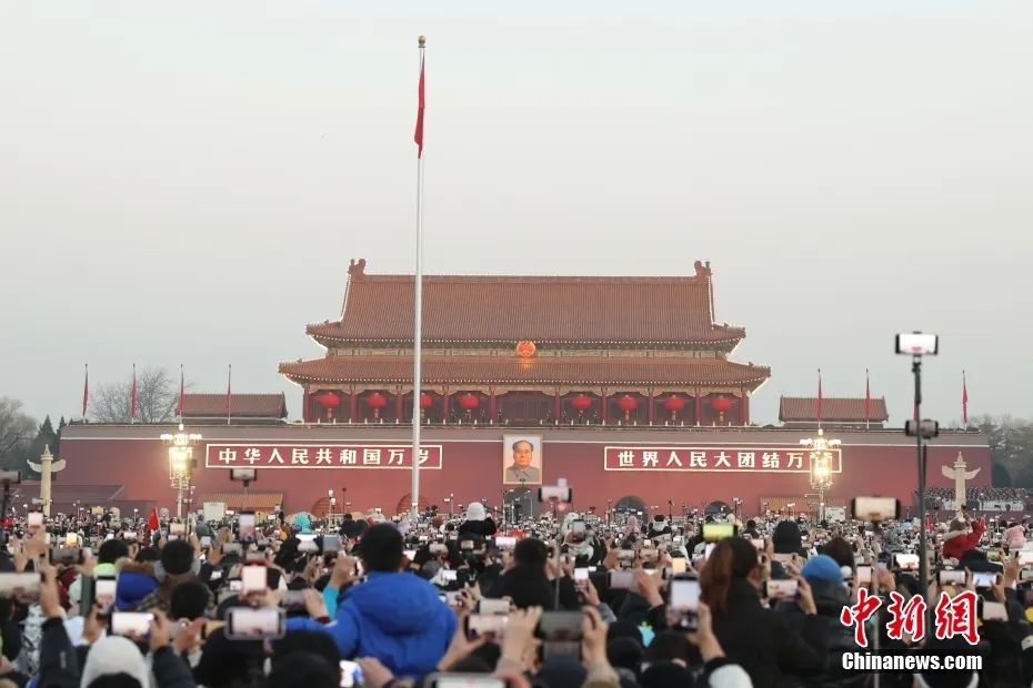 2024年1月1日晨,北京天安门广场举行隆重的升国旗仪式。中新社记者 蒋启明 摄