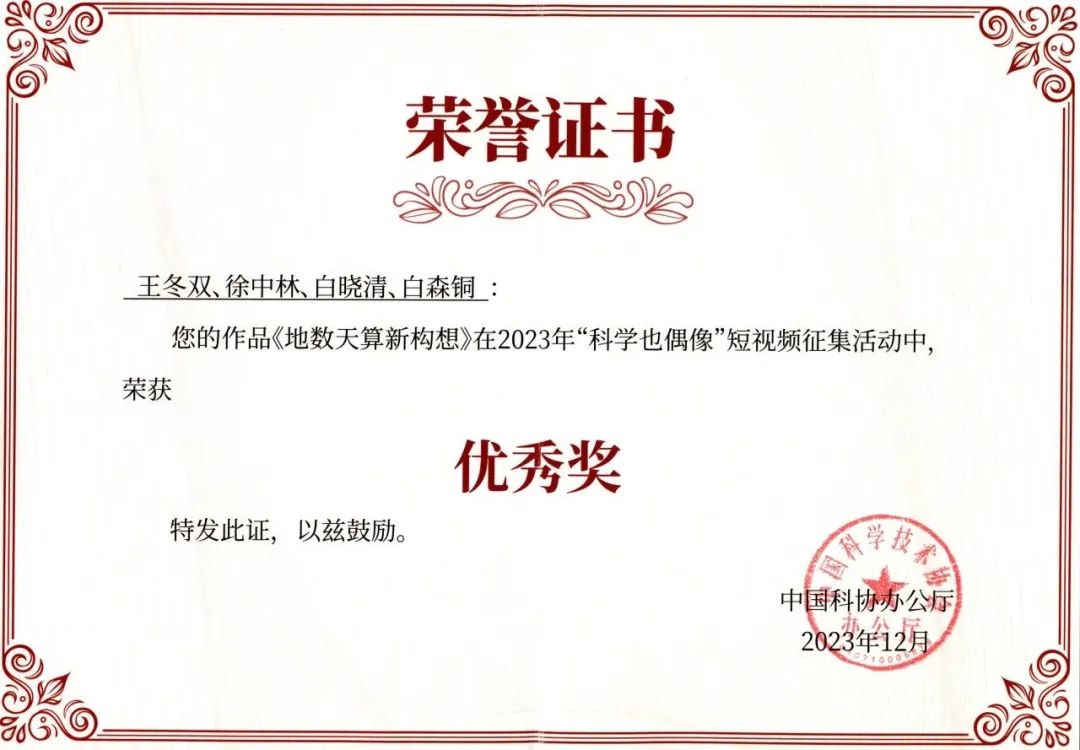 为贯彻落实党的二十大报告提出的“弘扬科学家精神,涵养优良学风”要求,大力弘扬科学家精神,营造崇尚科学、尊重人才的社会氛围,根据《2023年全国科学道德和学风建设宣讲教育工作要点》部署安排,中国科协、 教育部、科技部、 中科院、 社科院、 工程院、 自然科学基金委、 国防科工局等单位联合组织开展2023年“科学也偶像”短视频征集活动正式落幕。opta官网科研处积极响应,广泛宣传,组织多支队伍参加了这场比赛,并在畅想科创工作室的协助下,在全校范围内优选出的6部作品杀入全国决赛。最终,现代教育技术中心王冬双、徐中林,齐越传媒学院白晓清等合作的作品《地数天算新构想》和政史学院学生暴楠等同学的作品《严济慈》获得全国优秀奖。