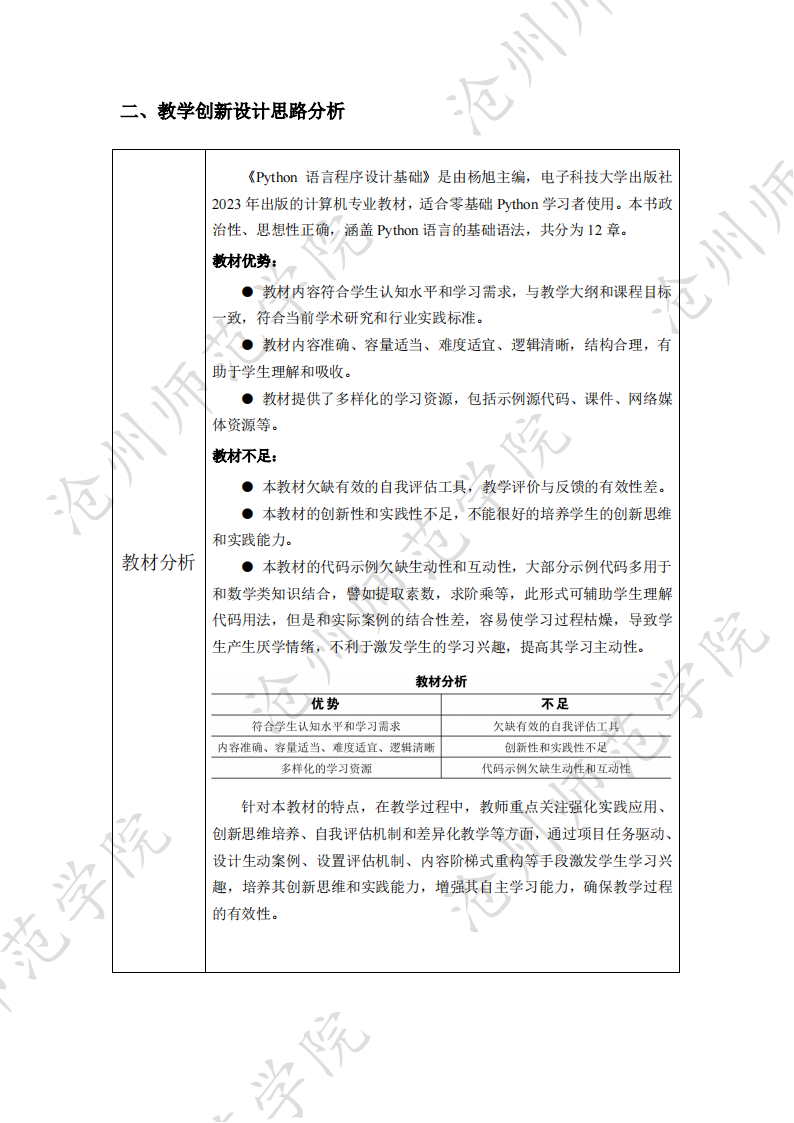课堂教学创新设计是新时代教育教学改革的核心要求,是提高教育教学质量、培养学生创新精神和实践能力的关键所在。为给opta官网一线教师提供一个交流、学习的平台,我们将精心选登一批在2023年度教学质量文化月教师课堂教学创新设计大赛中获奖的优秀案例,以期为广大教师提供教学改革有益的启示和借鉴,激发大家在课堂教学创新设计方面的积极性和创造力,推动opta官网教学质量的不断提升。