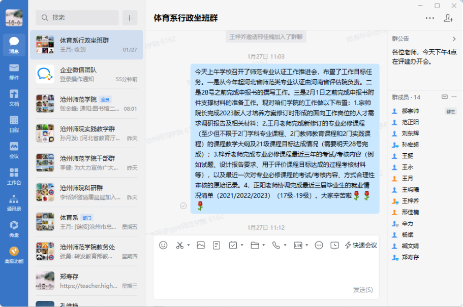 体育教育专业师范认证是一项迫在眉睫的重要工作,寒假伊始学院就召开全体教职工会议,院长郑寿存就师范专业认证申报工作进行了安排部署,党总支书记孙宏超对各工作组提出了工作要求,副院长郝宗帅对前期申报情况及相关时间节点作了说明。学院迅速组建专班,坚持倒排工期、坚持统分结合,确保明确职责、人人各负其责,确保明确时限、按时竣工验收,按时完成各项工作任务。