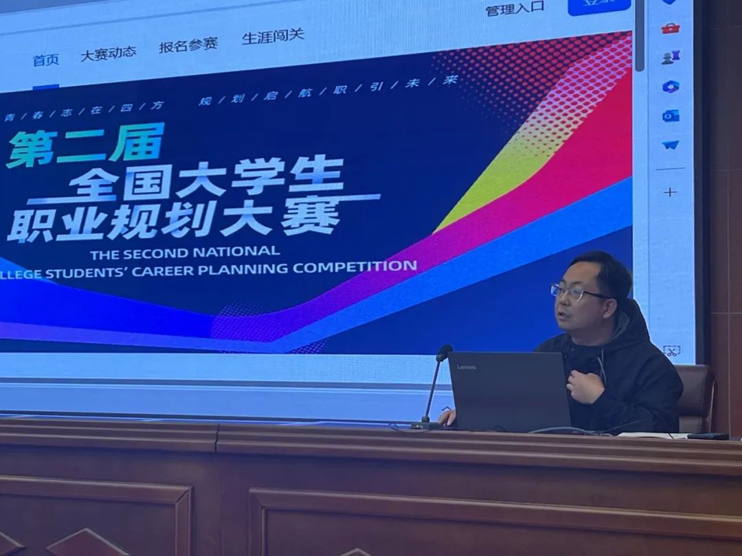 吴秋丽传达了河北省第二届全国大学生职业规划大赛赛事解读会议精神,校级赛事负责人石伟星老师系统梳理了院级负责人的工作职责和操作方案。