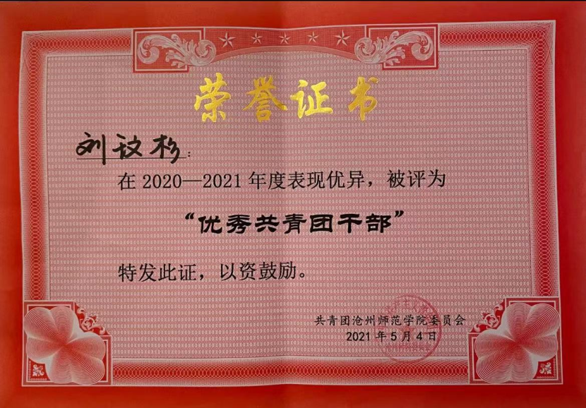 2021年荣获河北省“冀青之星”荣誉称号