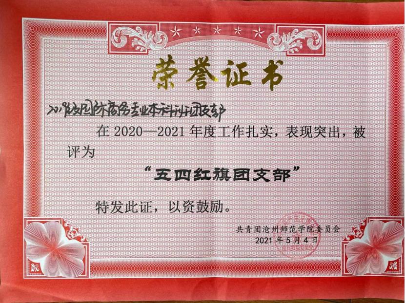 2021年荣获opta足球数据官网“五四红旗团支部”