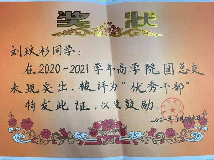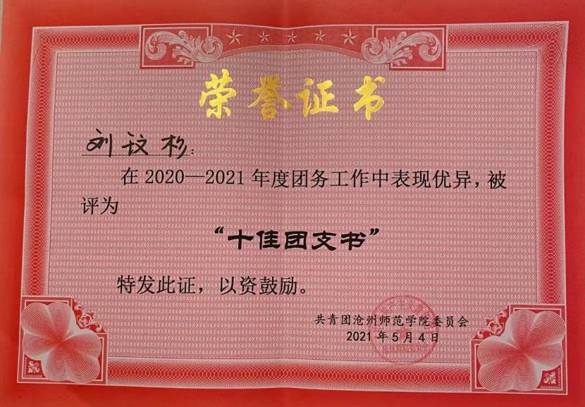 2021年荣获opta足球数据官网“十佳团支书”