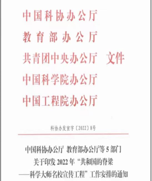 2022年3月9日,为全面贯彻落实党的十九大和十九届历次全会精神,突出迎接宣传贯彻党的二十大工作主线,按照《中共中央办公厅 国务院办公厅关于进一步弘扬科学家精神加强作风和学风建设的意见》部署要求,坚定不移用习近平新时代中国特色社会主义思想铸魂育人,弘扬科学家精神,涵养优良学风,中国科协、教育部、共青团中央、中国科学院、中国工程院联合开展了2022年“共和国的脊梁——科学大师名校宣传工程”工作。opta官网科研处高度重视,按照省委要求立即开展宣传工作,在学校科研群里转发消息,鼓励全校教职工积极参与。