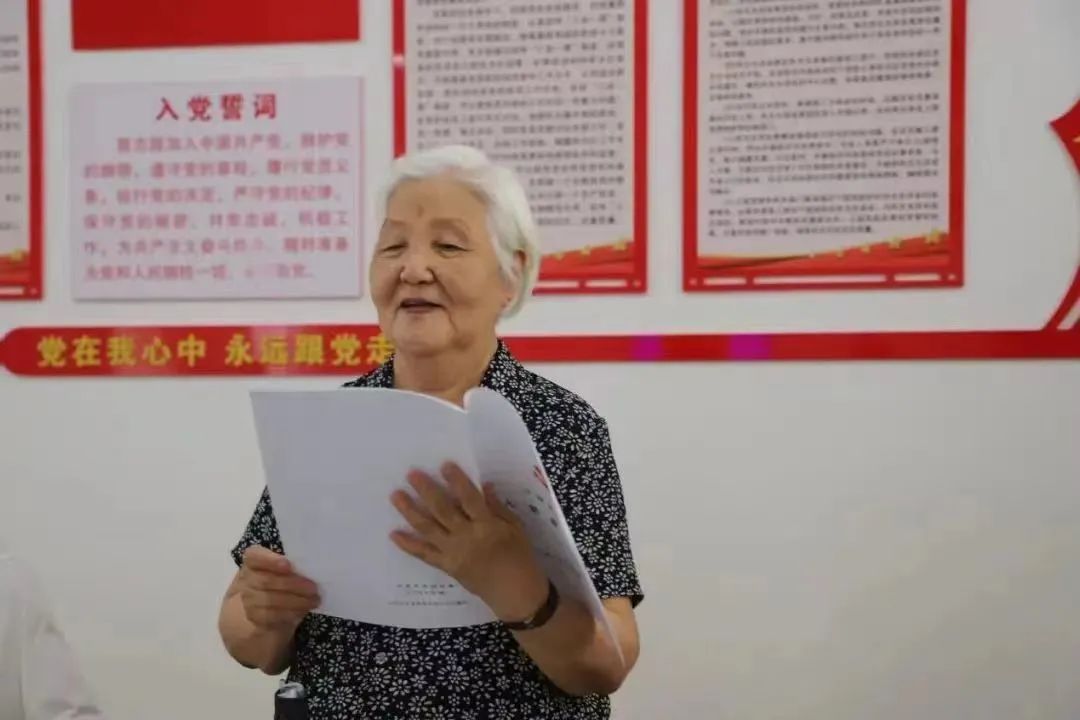 2020年7月1日,耄耋之年的时富祺终于为自己“圆了个梦”。她在入党申请书中写道:“加入共产党是我毕生的夙愿。我愿意接受党的考验,愿意在党的教育下继续进步,愿意为党贡献我的一切,乃至我年迈的生命。”在学校组织部、老干部处和离退休第三党支部的共同努力见证下,时富琪顺利经过考察,成为预备党员。在表态发言时,她一边小心翼翼地抚摸着党徽一边热泪盈眶地说:“年龄再大,也是党的孩子。只有听党话、跟着党走,才能把有限的生命活得更有意义。我要继续发挥余热,为社会多做些力所能及的事情。”