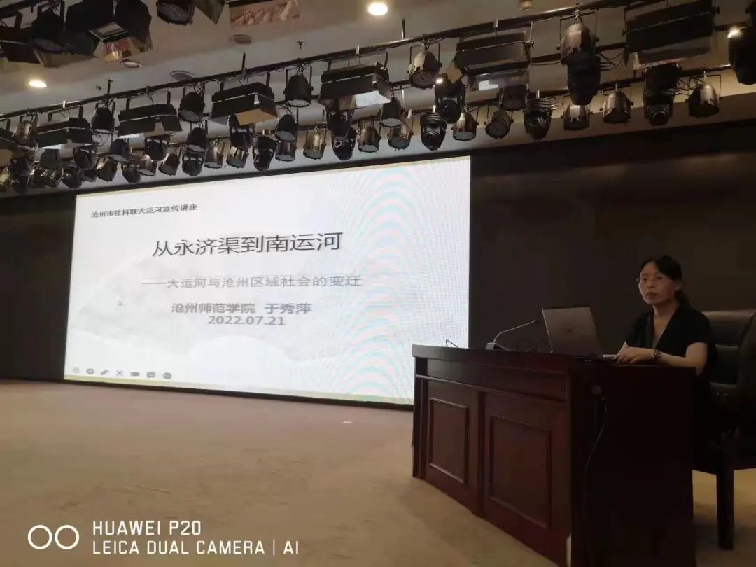 习近平总书记曾说:“大运河是祖先留给我们的宝贵遗产,是流动的文化,要统筹保护好、传承好、利用好。”为贯彻落实总书记对建设大运河文化带以及宣传大运河文化带思想的重要指示精神,7月21日,政史学院于秀萍教授在沧州图书馆报告厅作了“从永济渠到南运河——大运河于沧州区域社会的变迁”主题讲座。