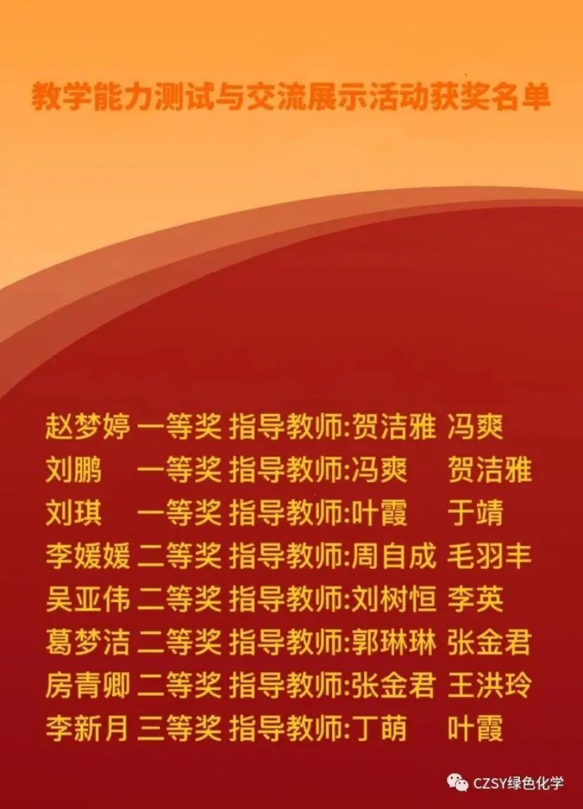 学生优异成绩的取得,离不开学院领导无微不至的关怀和教师们不辞劳苦的悉心指导,更离不开参赛选手们的百般坚持与不懈努力。此次活动的开展,是对化院教学工作和人才培养质量的一次检验,对今后进一步加强化院师范生的专业素质、教学技能和创新能力的培养、打造专业办学特色具有重要意义。