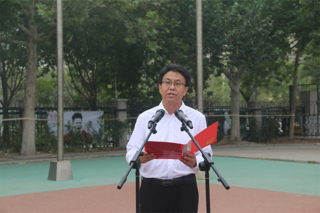 高颖主持仪式时强调,今天的升旗仪式,既是一堂爱国主义教育的思政课,也是疫情防控形势下做好学校各项工作的鼓劲儿会。希望大家鼓足干劲,齐心协力,克服疫情给我们的教学和生活带来的各种困难,服从大局,服务大局,全力以赴完成各项工作和学习任务,以更加优异成绩,向祖国华诞和党的二十大献礼。