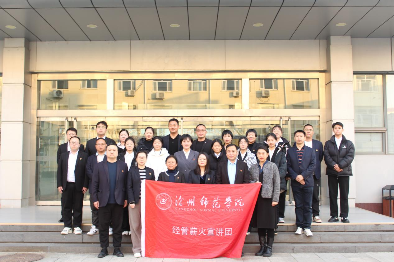 “积力之所举,则无不胜也;众智之所为,则无不成也。”为拓展党建合作单位,促进经济管理学院在互助互鉴中不断进步,共同推动党建工作创新发展,12月9日,经济管理学院党总支与中国移动通信集团河北有限公司沧州市区分公司党支部和沧州信誉楼百货有限公司朝阳街店党支部联合开展了“党建合创,合作共赢”暨“习近平总书记在河北的足迹”主题宣讲活动。经济管理学院党总支书记陈瑞坤、副院长胡蔚然、团总支书记滕加林、辅导员翟君伟及薪火宣讲团成员参加。