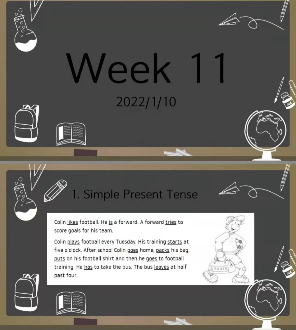 我首先感谢学校提供宝贵的实习机会。实习时间是2021年10月11日至2022年2月2日,期间进行线上教学。我的校外指导老师Mr. Badrul告诉我不必紧张,把教学看成一个趣事,享受它就好——这也是后来沟通交流时老师常常跟我提及的一句话。