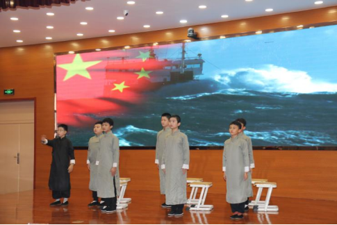 活动中,与会领导及师生代表共同观看了运河区实验小学学生表演的思政情景剧《为中华之崛起而读书》