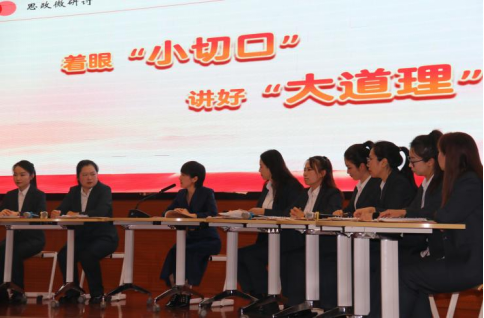 马克思主义学院师生参观了王俊霞思政名师工作室,观摩了工作室教师张艳辉、冯菲的思政课堂,围绕如何以学生身边小事、热点事为切口展开思政教育展开讨论。
